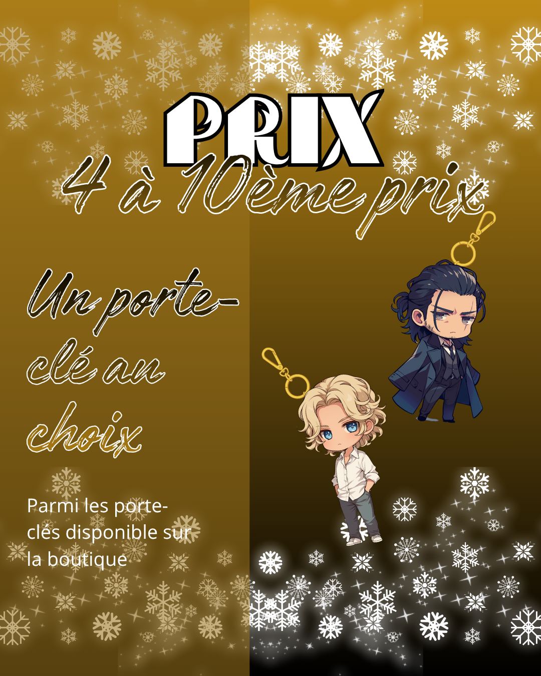 La grande Tombola de Noël de la Alex Q Boutique est là pour illuminer la fin d’année ! De fabuleux lots collectors fabriqués à la main, des standees rares, des porte-clés… et 10 gagnants assurés. Achetez autant de tickets que vous le souhaitez : plus vous jouez, plus vous avez de chances ! ★